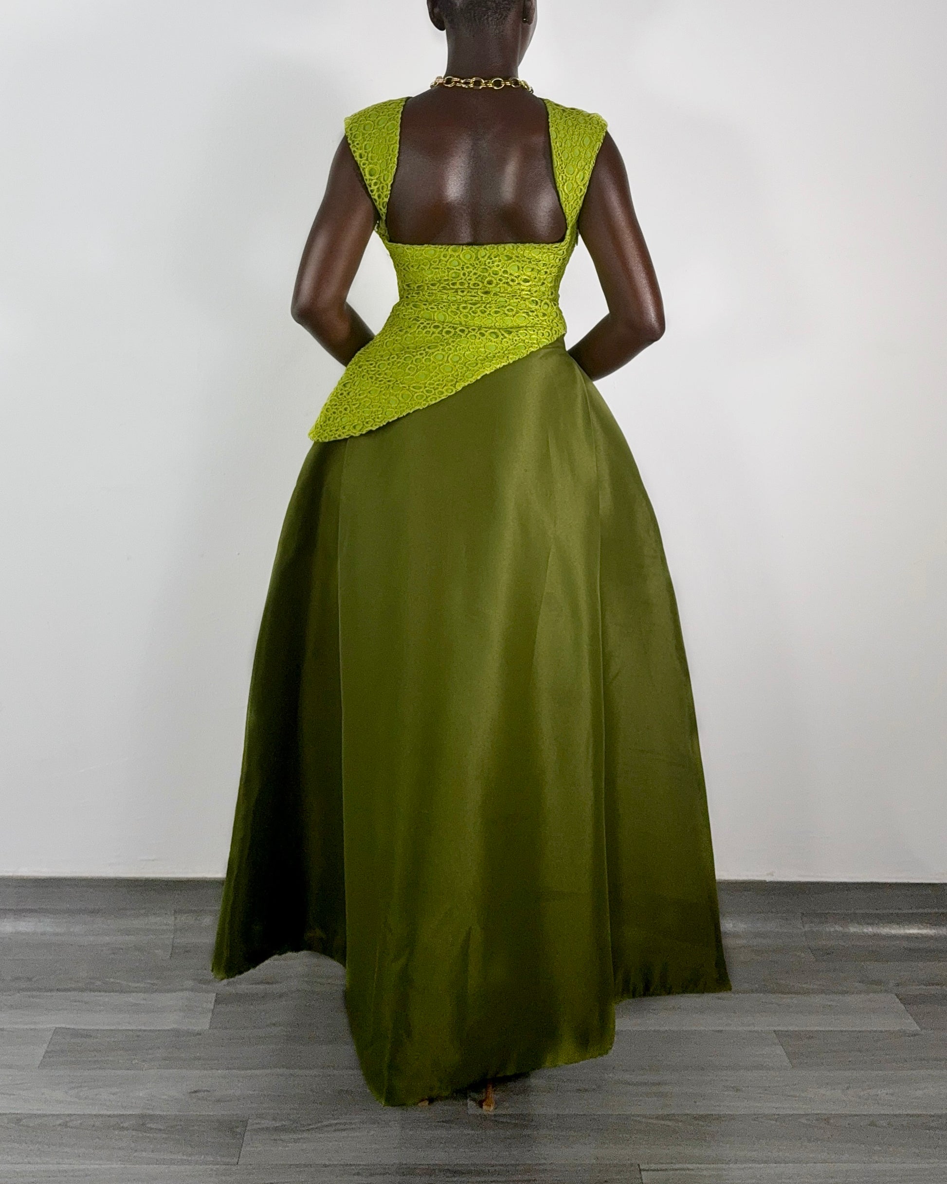 Fabric: Non-stretch chiffon lined with non-stretch satin.